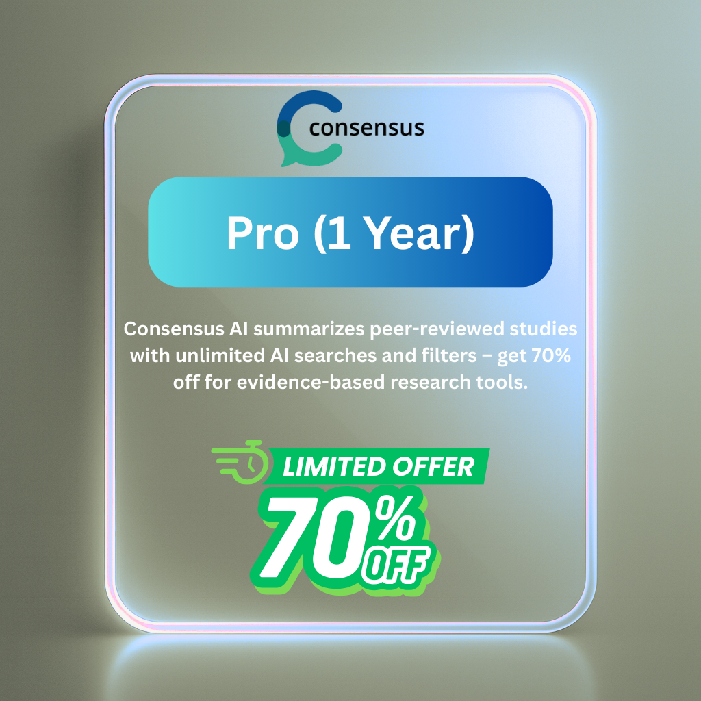 Accelerate your research with Consensus AI Pro, the AI tool that aggregates and summarizes peer-reviewed studies, offering GPT-4 summaries, advanced filters, and unlimited searches for evidence-based insights. Perfect for academics, scientists, and professionals, it features quality indicators and Deep Searches for thorough literature reviews. In 2025, it supports unlimited AI features, funding platform growth while delivering quick, reliable results. From health to social sciences, Consensus saves hours on analysis. Highlighted discount: 70% off the 12-month subscription – great value for unlimited pro access.